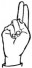 На ћирилици написано ЉУБИСЛАВ ДИМИТРИЈЕВИЋ састоји се из 20 слова [?]. Исписано ћириличном једноручном азбуком за глувонеме: